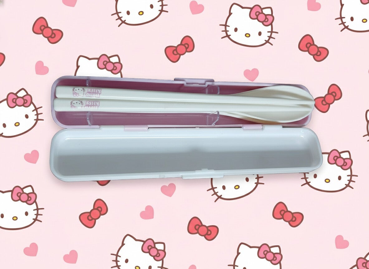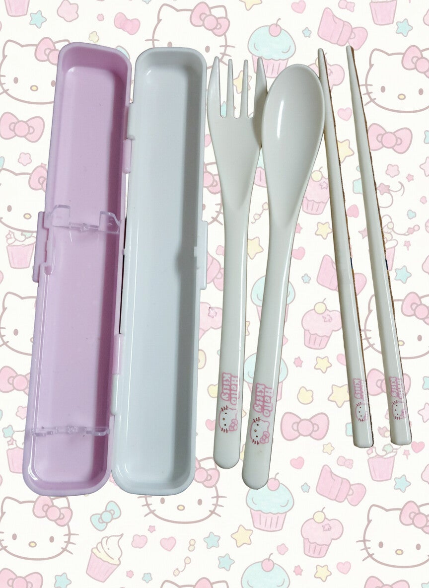 Hello Kitty Cutlery Flatware Set Fork Spoon Chopsticks Set with Case