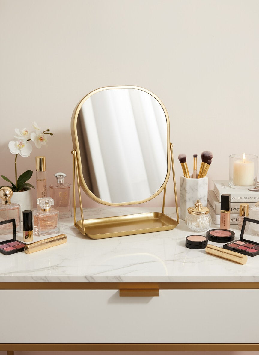 Brass Vanity Flip Mirror with Tray - Hearth & Hand™ with Magnolia: Swivel, 3X Magnification