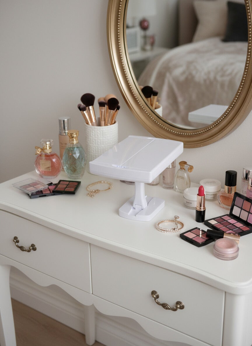 Makeup Mirror, LED Makeup Mirror, Multi-Functional Desktop Folding Mirror With Lamp, Adjustable