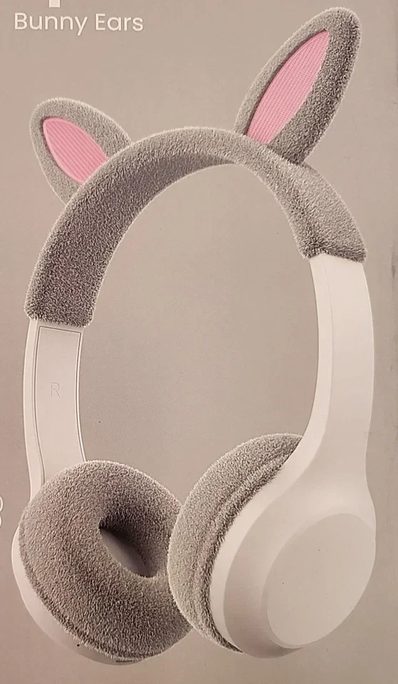 NEW Kids Wireless Bluetooth Headphones Bunny Ears Gray/White Volume Safe