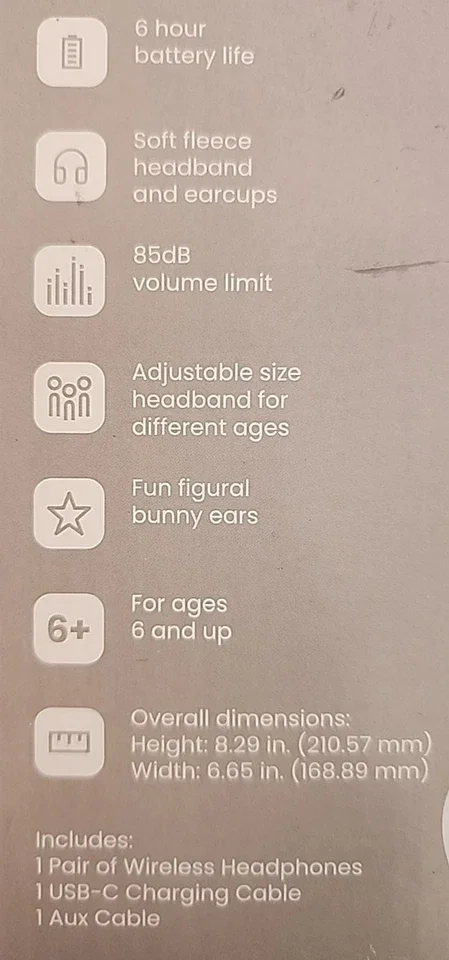 These are new in the box. The Kids Bluetooth Headphones with Bunny Ears are designed specifically for children, featuring a cute headband form factor and comfortable ear-cup style.With Bluetooth connectivity and built-in microphone, these headphones provide an easy and convenient way for kids to enjoy their favorite music or take calls. Complete with a charger included, these headphones are a great option for young users looking for a reliable and versatile audio solution.